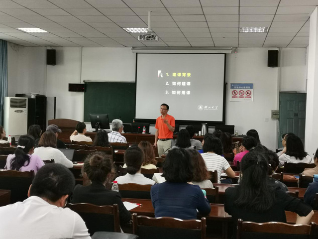 516日,湖北大学周红兵老师受邀到外国语学院为老师们作 “基于慕课/SPOC创新性外语教学实践专题讲座。周红兵老师是中国外语演讲与辩论教学研究专业委员会常务理事,英国文化教育协会(British Council)“雅思教师官方培训项目”主讲专家,湖北大学校级精品在线开放课程《英语演讲艺术》课程负责人,该课程在“中国高校外语慕课平台”首轮学习人数便突破一万人次。讲座由学院院长陈达主持。