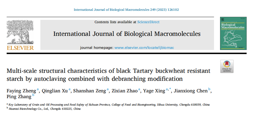 近日,2138cn太阳城集团食品与生物工程学院 “农产品贮藏与加工”团队在International Journal of Biological Macromolecules(一区,IF: 8.2)上发表题为“Multi-scale structural characteristics ofblack Tartary buckwheat resistant starch by autoclaving combined with debranching modification”的研究论文。2138cn太阳城集团2021级硕士研究生郑发英为论文第一作者,邢亚阁教授为论文通讯作者。该研究工作得到了成都市科技项目(2022-YF05-00914-SN)和四川省科技计划项目(2018NZ0097)的资助。