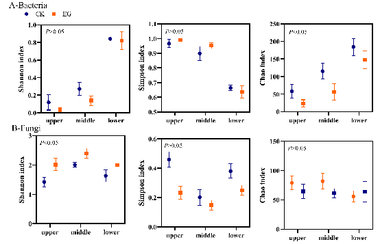 Fig. 2. The α-diversity of the bacteria (A) and fungi (B) in the FG.