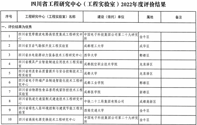 据悉,全省117个四川省工程研究中心(工程实验室)的整体评价结果为:优秀15个、良好19个、合格58个、不合格25个。