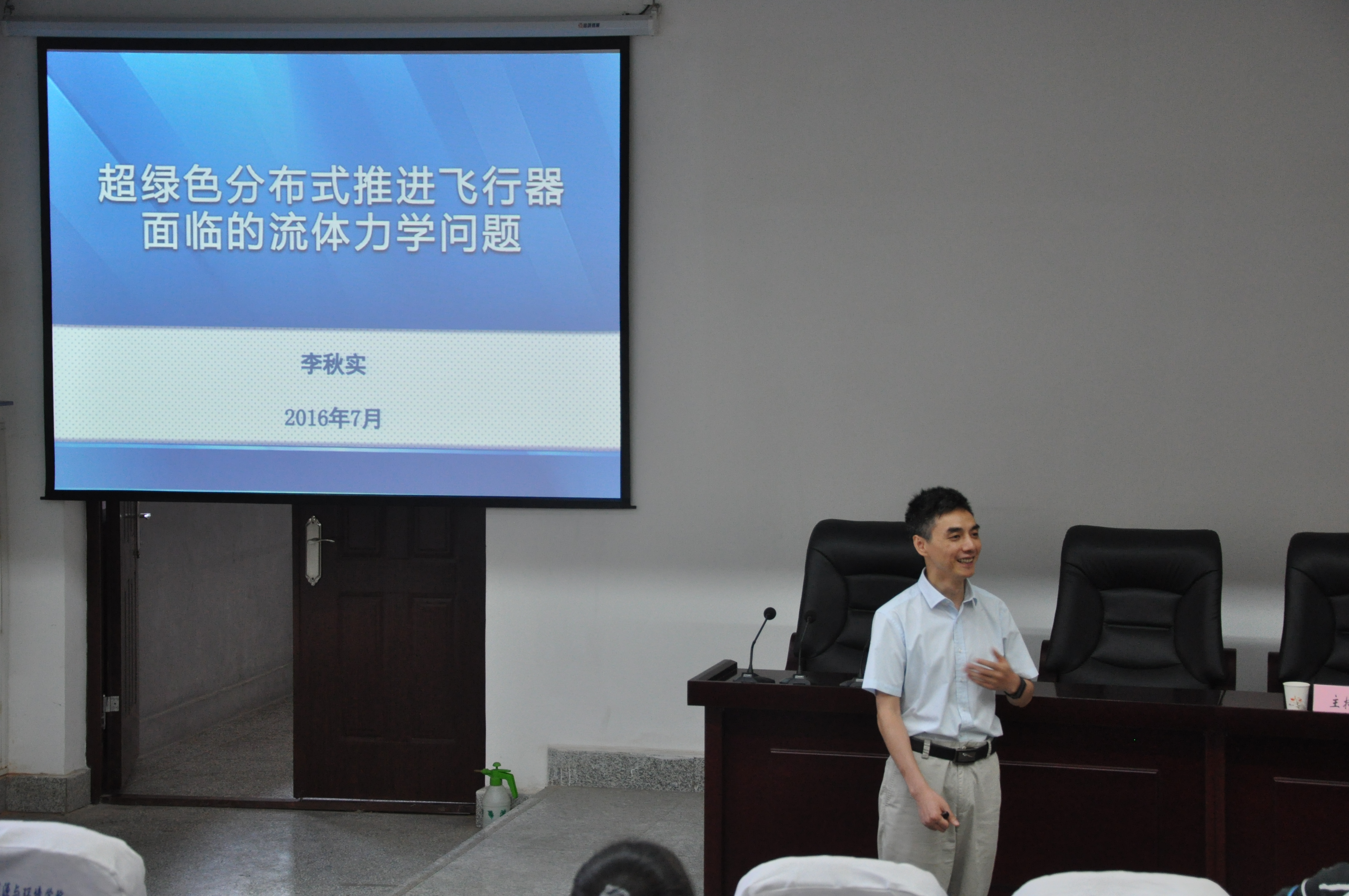 7月19日上午9:00,北京航空航天大学李秋实教授应邀在我校1B-201作了题为“超绿色分布式推进飞行器面临的流体力学问题”的学术报告。能源与动力工程学院党政领导、相关专业教师以及部分研究生参加了学术报告会。报告会由能源与动力工程学院院长刘小兵主持。