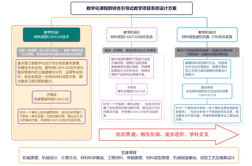 围绕数字化成型开展教学与科学研究,团队近年来获批高等教育学会等教学研究项目3项、教育部新工科建设项目1项、教育部协同育人项目6项。《材料成型CAD/CAE技术》入选国家一流课程、教育部“拓金计划”课程、教育部“跨学科课程教学创新改革虚拟教研室”特色课程、省级“课程思政”示范课程等。《三维数字化设计方法与应用》《材料成型CAD/CAE综合实践》等省级一流课程5门,编著《材料成型CAD/CAE技术与应用》等教材6部。联合江苏大学、南方科技大学等全国近100所学校和企业成立的“工业数字化技术课程群虚拟教研室”入选四川省虚拟教研室建设试点单位。基于团队多年的教学改革与创新,获第五届全国高等院校工程应用技术教师大赛全国一等奖,第三届全国高校教师教学创新大赛新工科正高组二等奖,第三届中国有色金属学会高等教育教学成果一等奖。