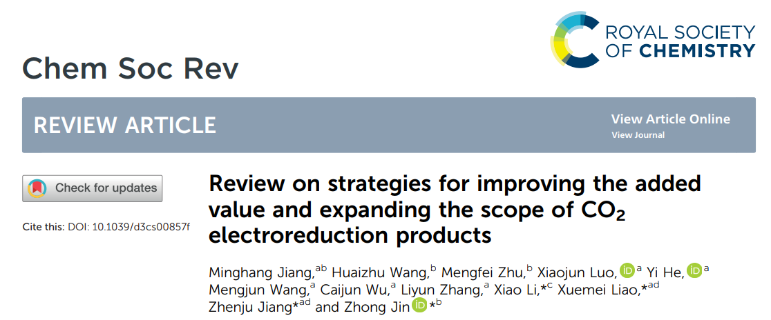 近日,理学院青年教师江明航博士在Chemical Society Reviews期刊(中科院一区,IF=46.2)发表题为“Review on strategies for improving the added value and expanding the scope of CO2 electroreduction products”的综述论文。江明航博士为该论文的第一作者,2138cn太阳城集团为第一通讯单位。蒋珍菊教授、廖雪梅教授、南京大学金钟教授和玉林师范学院黎晓副教授为该论文的共同通讯作者。