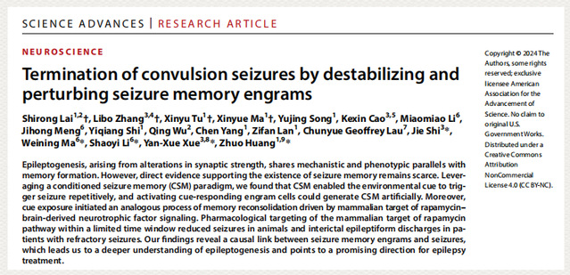 该研究第一时间获得专家点评,张礼和(中国科学院院士、北京大学药学院教授、天然药物及仿生药物国家重点实验室学术委员会名誉主任)说:“这一研究不仅为癫痫治疗领域带来了新的突破,也为其他神经系统相关疾病的临床治疗提供了新的启示和借鉴。”高天明(中国工程院院士,南方医科大学教授,粤港澳大湾区脑科学与类脑研究中心主任)表示:“这一研究首次证实了早期研究者提出的‘癫痫记忆’痕迹细胞理论,在理论层面拓宽了我们对病理性记忆机制的认识,为癫痫的发病机制研究提供了新的思路,并为病理性记忆相关神经系统疾病的治疗提供了一种潜在的精准干预策略。”