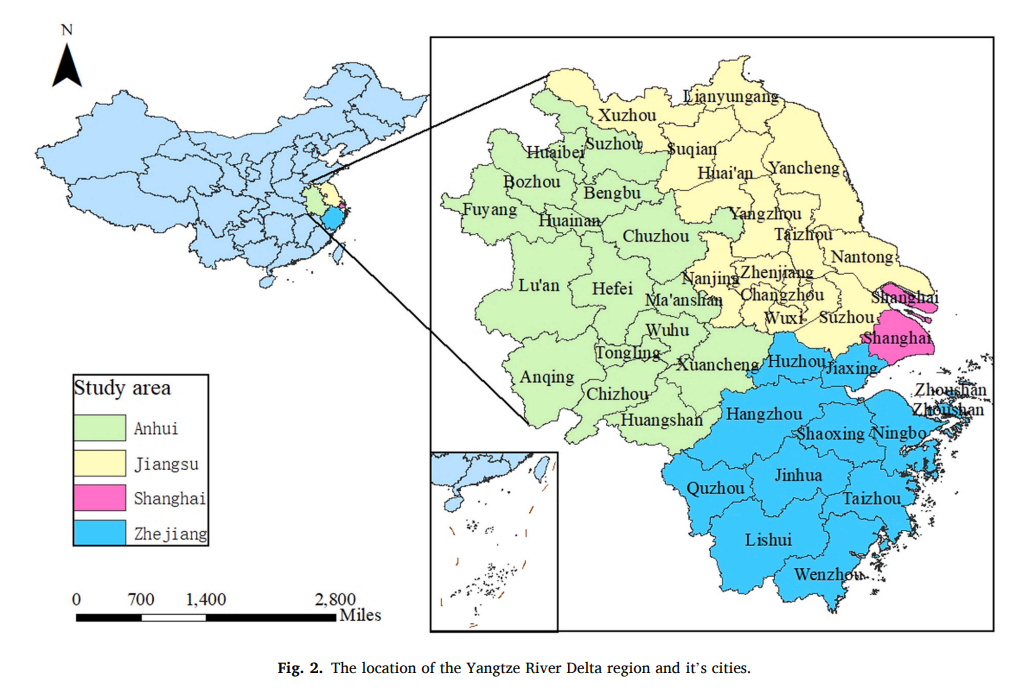 Figure 2 The location of the Yangtze River Delta region and its cities