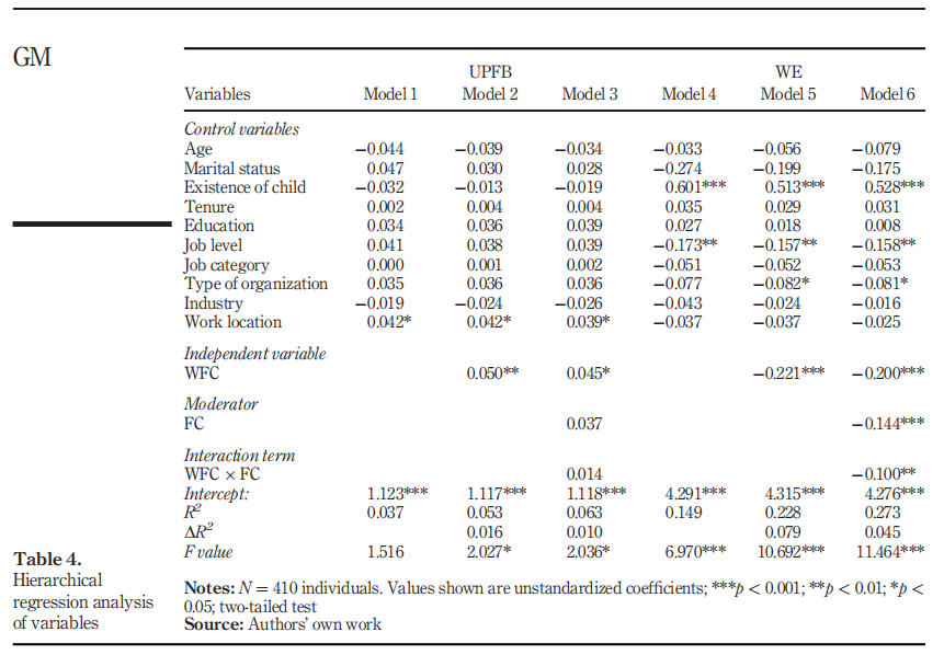 该研究聚焦于中国企业的女性领导群体,关注女性领导所经历的工作-家庭冲突(WFC),深入探讨了工作-家庭冲突对中国女性领导的亲家庭不道德行为(UPFB)和工作投入(WE)的影响,并探索了工作-家庭内疚(WFG)在其中的中介作用以及家庭中心性(FC)的调节作用。研究采用定量研究方法,通过三个时点进行线上问卷调查来收集数据(N = 410),采用层次回归法和Bootstrap法对这些数据进行统计分析,以检验提出的假设。