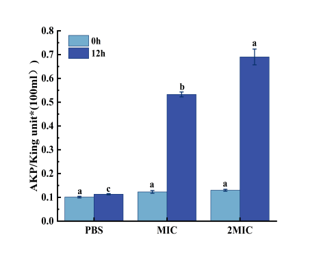 研究分析AEO对P.fluorescens的抗菌活性发现,AEO对P. fluorescens 的MIC为12.5 μl/mL,MBC为25 μl/mL,SEM观察到荧光假单胞菌在2MIC的AEO处理后细胞形态受损严重,菌体大量死亡,显著抑制了细胞生长速率。此外,AEO处理导致AKP酶活性和电导率增加,细胞内核酸和蛋白等大分子合成物质明显泄露,证明细胞壁和细胞膜的完整性被破坏。