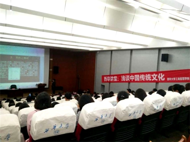 10月23日下午三点,西南财经大学副教授崔雪茹老师做客西华讲堂,以中国传统文化为讲座内容,给在场师生带来了一场主题明确,内涵丰富,富有启迪性的学术文化盛宴。