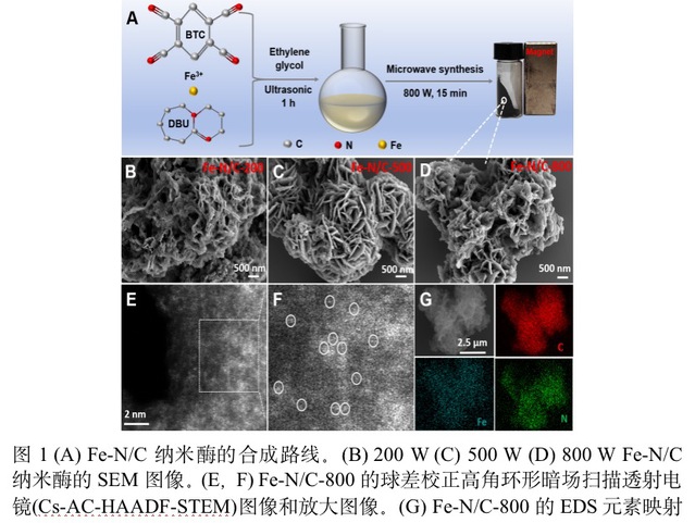 铁锚定氮/掺杂碳单原子纳米酶(Fe-N/C)具有均匀的活性位点和可调节的催化环境,是研究结构-功能关系和催化活性的典范模型。然而,开发非热解、模拟酶活性可调的Fe-N/C合成技术仍然是一个重大挑战。