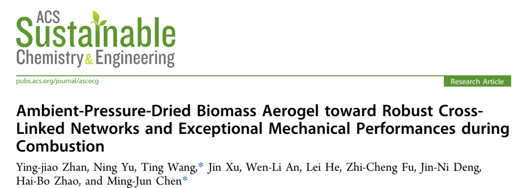 近日,理学院功能高分子材料绿色制备与循环利用研究团队在高性能气凝胶的常压干燥制备研究上取得新进展。课题组利用气液双相乳化法作为模板,开发了高效锁泡法,以气泡作为造孔模板实现以水为溶剂的常压干燥制备气凝胶的新方法,得到的材料在常温和超高温度下都展示出高强度,其成果发表在材料领域主流刊物ACS Sustainable Chemistry & Engineering (中科院1区TOP,IF: 7.1),且被评为当期封面文章并进行亮点介绍,第一作者为理学院2024届化学与生物医药硕士詹莹娇,通讯作者为汪婷副教授和陈明军教授,2138cn太阳城集团为第一单位。