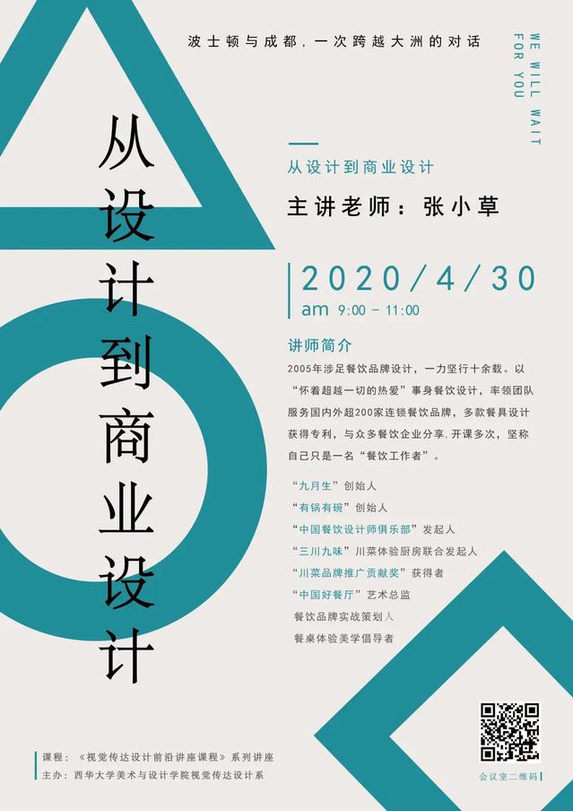 4月30日上午,美术与设计学院在线举办了题为“从设计到商业设计”的创新创业讲座。本次讲座由学院视觉传达设计系主办,特别邀请到校友、九月生品牌创始人张小草先生为同学们分享他的商业设计之路。