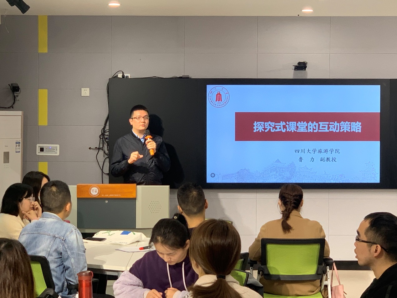 10月23日上午,四川大学旅游学院鲁力副教授应邀来校,为我校教师带来了题为“探究式课堂的互动策略——理论与实践活动”的培训讲座,各学院共计30余名教师参加本次交流活动。
