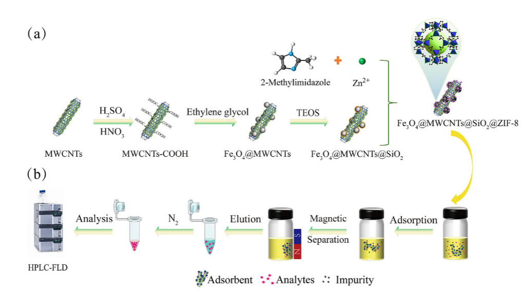 工作二: “Zeolitic imidazolate framework functionalized magnetic multiwalled carbon nanotubes as efficient adsorbents for rapid extraction of fluoroquinolones”