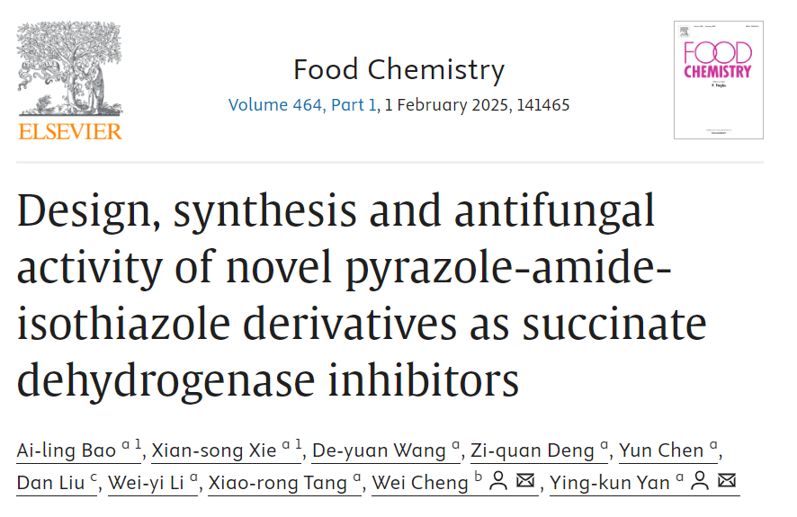 近日,理学院青年教师严映坤博士在国际Top学术期刊Food Chemistry(中科院一区,IF = 8.5)上发表研究性论文。论文通讯作者为严映坤博士,硕士研究生包爱玲为论文第一作者,2138cn太阳城集团为该论文的第一完成单位,西南交通大学程玮博士对该工作提供了帮助。