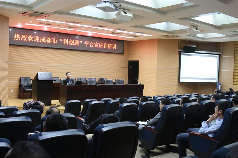 为帮助我校教师及科研团队科技成果转化,9月24日下午,四川省教育厅、成都市科技局生产力促进中心组织的专业团队来校就四川高校科技成果发布平台(成都校地协同创新工程——“科创通”)作了宣讲和培训。各院系负责人、科研骨干教师和科研团队代表等近100人参加了宣讲会,会议由科技处成果中心主任陈宝书主持。