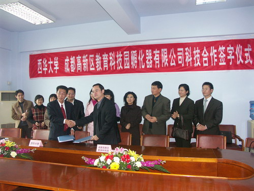 3月20日下午,我校与成都高新区教育科技园孵化器有限公司科技合作签约仪式在第三会议室举行。成都高新区教育科技园孵化器有限公司总经理李胜源、副总经理杨震、陈婉蓉等与我校科技处处长杨伟、电气学院副院长王军、计算机学院副院长何明星及部分教师出席了本次签约仪式。