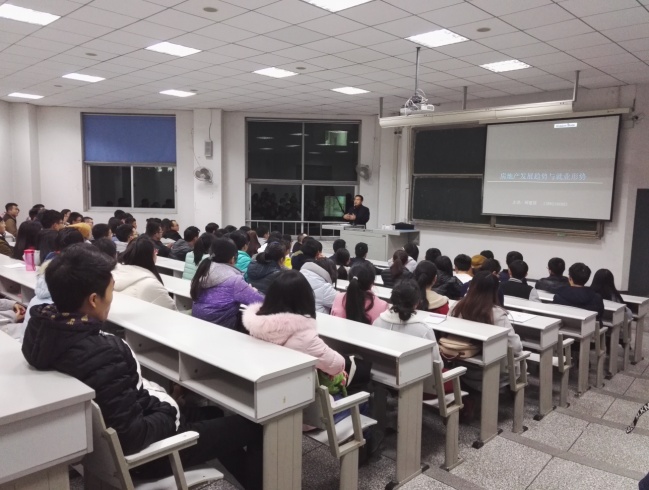 12月26日,建设与管理工程学院邀请了房地产资深专家胡建国先生在四教为房地产开发与管理专业的学生进行了“房地产行业发展趋势和就业形势”的专题讲座。