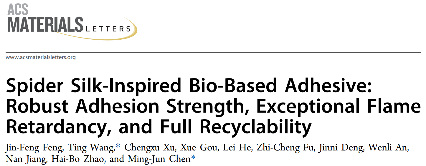 近日,理学院功能高分子材料绿色制备与循环利用研究团队在生物基阻燃胶粘剂研究上取得新进展,相关成果发表在美国化学会出版期刊ACS Materials Letters,论文第一作者为理学院材料科学与工程专业硕士研究生冯金凤,通讯作者为汪婷副教授和陈明军教授,2138cn太阳城集团为第一单位。