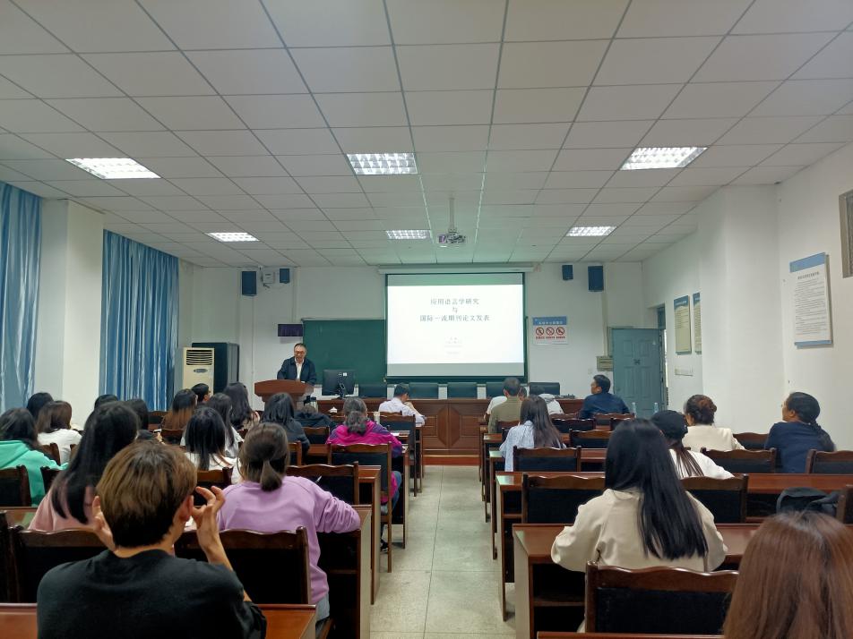 4月23日下午,上海交通大学外国语学院雷蕾博士在我校四教MTI教室4B-111开展了题为“大数据时代的应用语言学研究与国际期刊论文发表”的学术讲座。讲座由外国语学院副院长李国宏主持,参加此次讲座的主要有外国语学院教师、2019级外国语学院硕士研究生以及英语专业本科生。
