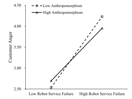 研究一拟人化程度在机器人服务失败与顾客愤怒之间的调节作用