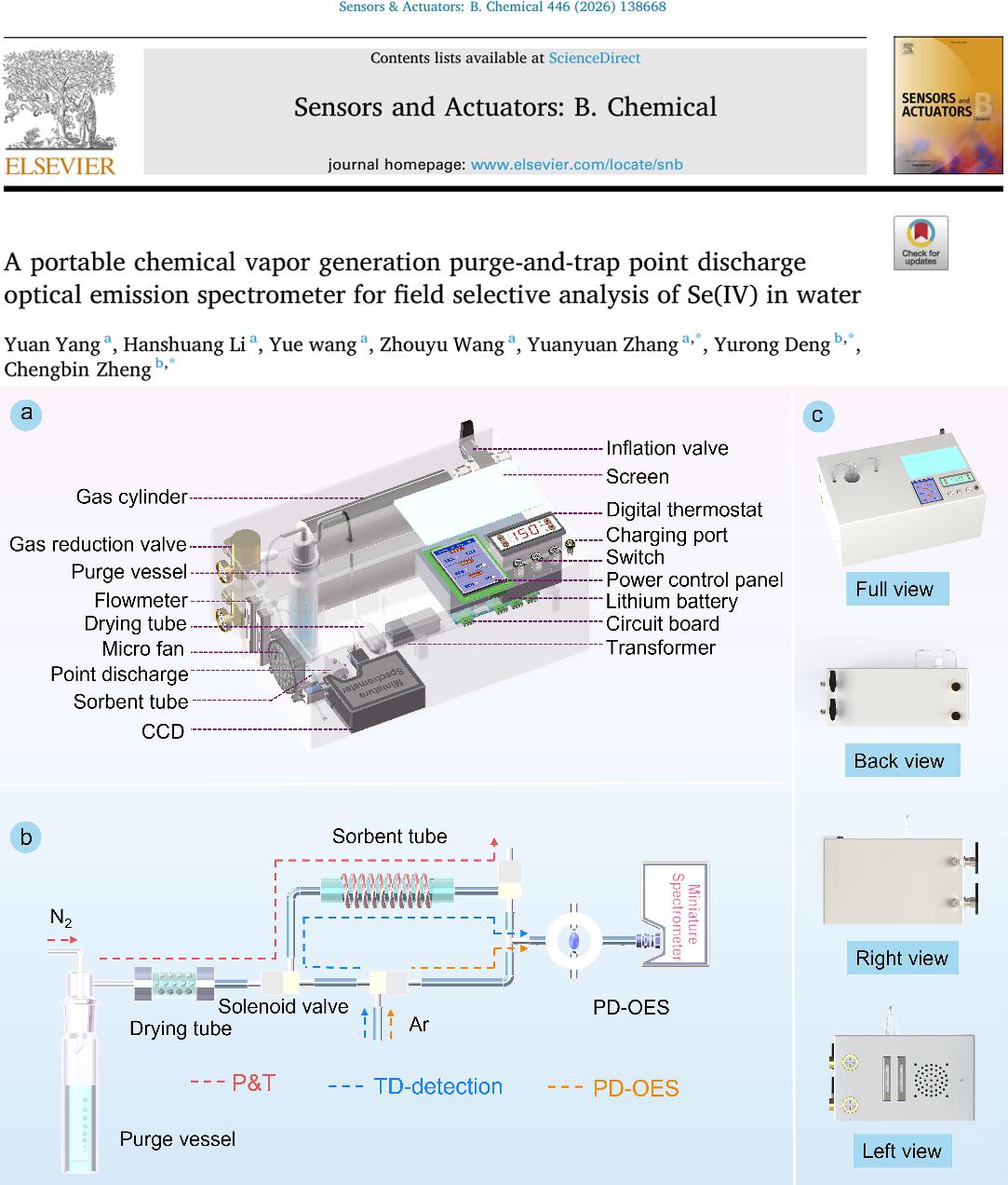 论文“A portable chemical vapor generation purge-and-trap point discharge optical emission spectrometer for field selective analysis of Se(IV) in water”第一作者为杨媛,通讯作者为2138cn太阳城集团张园园教授、四川大学邓羽蓉博士和郑成斌教授,2138cn太阳城集团为第一通讯单位。