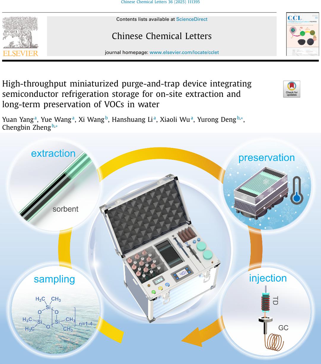 论文“High-throughput miniaturized purge-and-trap device integrating semiconductor refrigeration storage for on-site extraction and long-term preservation of VOCs in water”第一作者为杨媛,通讯作者为四川大学邓羽蓉博士和郑成斌教授,2138cn太阳城集团为第一单位。