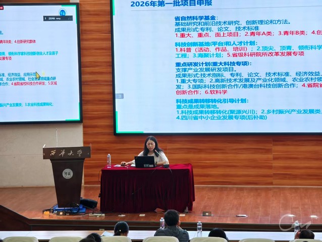 2025929日,学校科技处在图书馆报告一厅组织召开2026年度第一批四川省科技计划项目申报政策宣贯与交流会。各学院科研骨干、拟申报项目负责人及科技处相关工作人员参加会议。