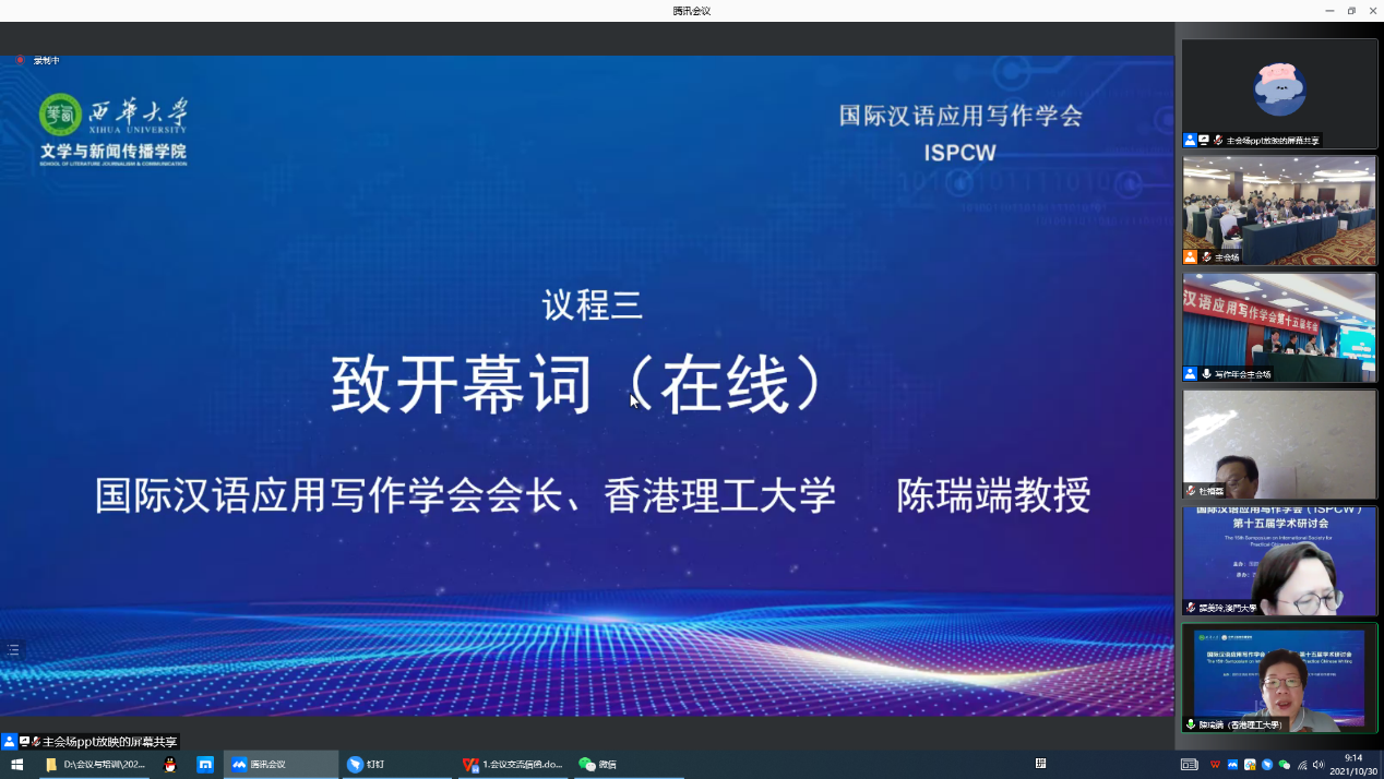 国际汉语应用写作学会会长、香港理工大学教授在线致辞