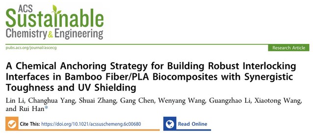近日,材料科学与工程学院高耐受聚合物基复合材料创新中心研究生李临以第一作者在国际Top期刊ACS Sustainable Chemistry & Engineering(中科院1区)发表题为《A Chemical Anchoring Strategy for Building Robust Interlocking Interfaces in Bamboo Fiber/PLA Biocomposites with Synergistic Toughness and UV ShieldingClick to copy article links》的研究论文。论文通讯作者为韩锐教授,2138cn太阳城集团为第一完成单位。