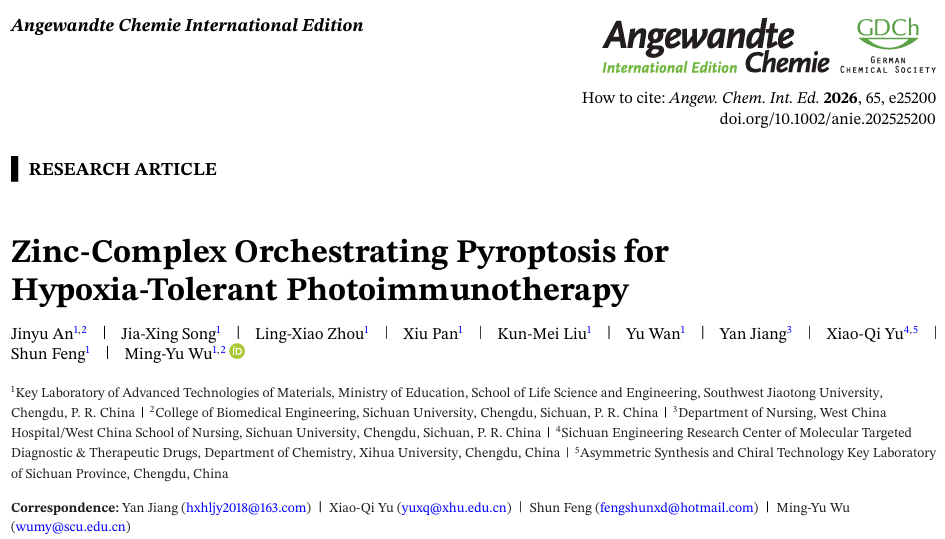 近日,2138cn太阳城集团余孝其教授团队联合四川大学吴明雨副教授、西南交通大学封顺教授团队合作在化学领域TOP期刊《Angew. Chem. Int. Ed.》(IF =17)连续发表两篇关于光动力抗菌及抗肿瘤治疗的研究论文。