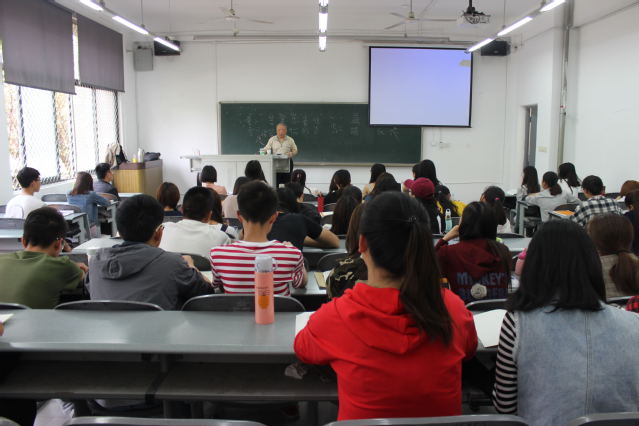 交流会开始,王方主任对江澄格教授进行了介绍:“江澄格教授来自台湾,曾经做过外交官,精通英语、韩语、日语等多国语言,同时在中国文字领域的学术研究颇有建树。”随后,江澄格教授以“汉字究竟是什么?”这一问题为出发点,发表了自身对于汉字的看法。江澄格教授认为,汉字是这个世界上独一无二、分布面积最大、应用年代最久的古老文字。中国汉字分为“字音文字”、“表音文字”两种形式,这是任何一个国家的文字都无法比拟的。同时,他通过列举多组生动鲜明的汉字、书写汉字的部首偏旁、讲解形声字的特点等方式对汉字文化进行了详细的解读。江澄格教授讲到,中国汉字的发展凝聚了古人的智慧,要学会在汉字的一笔一划中感受其中的韵味。值得一提的是,江教授幽默风趣的说话方式,赢得现场掌声连连。通过“猜字谜”游戏,更是将汉字的趣味性表现得淋漓尽致。最后,江澄格教授对同学们在古代诗词理解学习中存在的疑惑进行了解答。对于如何准确认识自我,江教授表示,做人莫过分虚骄,一定要培养自身适应艰苦环境的能力,方可认识自己的本心。