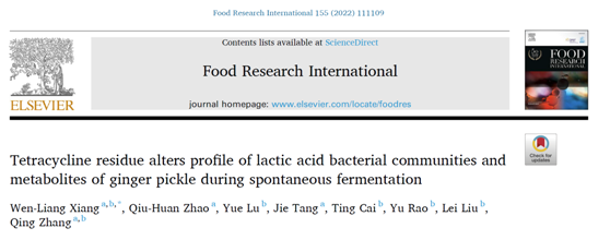 近日,食品与生物工程学院向文良教授“发酵食品过程学”团队在Food Research International(一区,IF:6.475)上发表题为“Tetracycline Residue Alters Profile of Lactic Acid Bacterial Communities and Metabolites of Ginger Pickle during Spontaneous Fermentation”的研究论文。