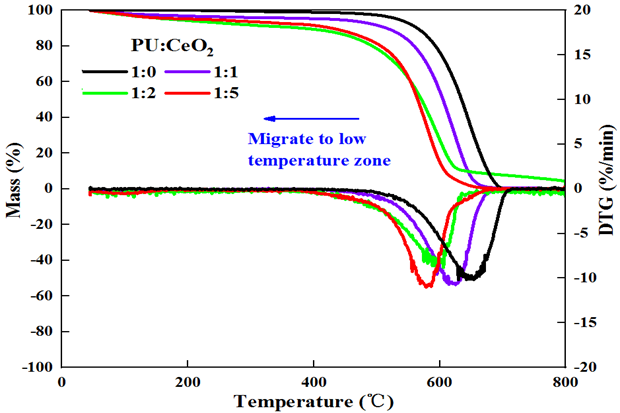 Figure 7. TGA burning of PU at different CeO2 ratios