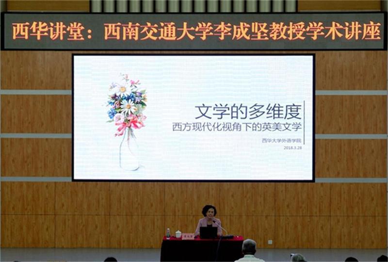 53日,西南交通大学外国语学院院长、博士生导师李成坚教授应邀来到外国语学院,为外国语学院师生作了题为“文学的多维度:西方现代化视野下的英美文学”的讲座。讲座由外国语学院院长陈达教授主持。