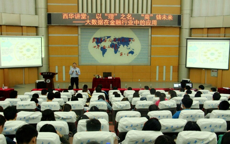| 4月24日下午,四川大学经济学院杨整教授应理学院邀请,在四教报告厅展开了以“大数据在金融行业的应用”为主题的专题讲座。理学院相关专业的同学参加本次活动。 讲座上,杨教授为同学们讲述了理解大数据、大数据决策模型、金融行业应用、已有研究成果等方面的内容。他谈到,在当今科技信息时代,大数据人工智能的完美结合是社会发展的主流方向,金融行业在大数据背景下有着信息优势化、风险定价简单化的特点。在互动环节,同学们积极思考、踊跃发言,提出了很多实际问题、应用假设,得到了杨教授的一一解答,加深了对大数据及其应用的理解。 本次西华讲堂,给同学们带来了前沿信息和实用建议,增加了他们对金融大数据的理解和认识,一定程度上为今后从事金融行业工作及相关应用打下了基础。