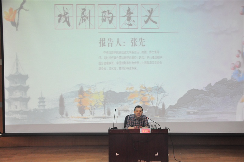 5月19日上午,2016高雅艺术进校园活动在我校图书馆报告厅举行。主讲人张先以戏剧的意义为主题为西华师生带来一场讲座。讲座从戏剧的起源和构成以及戏剧的特点两个方面具体阐释戏剧的意义,并以视频展示的方式使师生近距离领略戏剧魅力,感受艺术熏陶。 起源到意义,多维讲述戏剧魅力 戏剧即表演,古希腊戏剧起源于祭祀活动,发展至今表演行为广泛存在于日常生活之中。在张先看来,大至国庆节阅兵仪式,小至小孩子过家家,乃至追悼会均是表演行为。张先谈到,戏剧的特点是欣赏者和创造者处于同一时空范围内进行艺术交流。观众与演员交流,结识角色解读戏剧中的内在情感,得到精神满足;观众与角色交流从而了解剧情;演员和角色交流,演员通过观众反应分析演出是否成功。戏剧通过三方互动交流产生独特的艺术魅力。 在讲座上,张先通过播放欧洲宗教剧、正剧《我在天堂等你》、悲剧《北极之光》和喜剧《希望长安》四段戏剧视频,用视听与讲述结合的方式向师生展示中西方戏剧的不同之处,大陆与台湾戏剧表现方式的差异以及宗教剧、正剧、悲剧、戏剧之间的区别。张先说:“戏剧承担了人类对命运自然、对人、对物的思考的作用,戏剧能够探讨人、人的内心、人的本质以及人对自身的认识。” 提问观众,调研戏剧关注度 在讲座结尾,没有以往的观众提问,而是主讲人主动出击向观众提问。张先认为戏剧是否繁荣是国家文化发达程度的标志,而戏剧的繁荣程度通过大众对戏剧的关注程度表现出来。“你们为什么不去剧场看戏?”“给我推荐一部你们现在喜欢的电影电视剧。”“喜欢日剧,韩剧还是美剧?”一连串贴近青年人对于戏剧的关注程度的问题不是简单提问,更是小型调研。 此次高雅艺术进校园活动让全校师生领略到戏剧的艺术魅力,对于提高师生艺术鉴赏能力,推动校园文化建设有积极意义。 主讲人简介: 张先,自1999年起至今担任中央戏剧学院戏剧文学系主任职务,同时担任联合国戏剧评论家协会(IATC)执行委员和中国分会理事长,中国戏剧家协会会员,中国戏剧文学协会副会长,文化部,教育部特邀专家,教授,博士生导师。曾获2003年中国文联文学艺术评论奖、2004年度中国曹禺戏剧评论优秀奖、2005年中国戏剧文学创作金奖。2011中国话剧金狮奖。 曾多次受聘担任文化部,教育部,中宣部,团中央,广电部,中国戏剧家协会,北京戏剧家协会,中国广播协会,中国戏剧文学协会,北京市教委等部门的特约评委,参加“国家舞台演出精品工程”,“五个一工程”,“全国优秀舞台剧本评选”,“文化科研评选工程”,“社会科学成果评选工程”,“曹禺戏剧文学奖”,“老舍文学奖”,“全国优秀广播剧评奖”,“北京市社会优秀科学奖”,“青年戏剧文学奖”,“北京大学生戏剧节”等活动。 个人著作:《剧本创作论要》中国戏剧出版社(2003年);《什么是真相?-戏剧理论,戏剧批评作品集》中国戏剧出版社(2006年)。合作著作:《外国戏剧经典解读》(上、下)作家出版社(1987年);《戏剧文学系专业考试指南》广播电视出版社(2003年);《剧本创作初级教程》中国戏剧出版社(2003年),2009年由文化艺术出版社修订再版。主编的著作:《戏剧艺术》广西师范大学出版社 (2005年);《外国戏剧经典作品赏析》高等教育出版社( 2005年)。另有近百万字的戏剧理论、戏剧评论,影视评论,文化批评等论文及文章在报刊杂志问世,还有十余部的话剧、音乐剧、电视剧连续剧作品问世。其中话剧作品《活着》(改编自余华同名小说)由国家话剧院在国家大剧院首演。孟京辉执导,黄勃,袁泉主演。