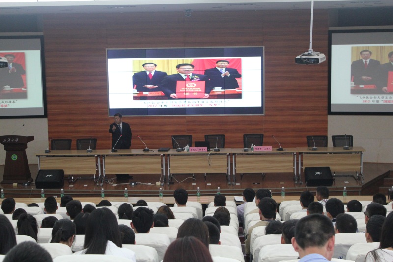 5月16日,下午2:30,“新电气、新信息”研学论坛第三十七期讲座在2138cn太阳城集团图书馆举行,中国科学院院士、北京航空航天大学副校长房建成教授来到我校进行题为“北航助您实现人生梦想”的精彩讲座。本次讲座由2138cn太阳城集团副校长何建平主持,电气与电子信息学院和计算机与软件工程学院部分师生代表参加 了此次讲座。 讲座中,房建成首先对北京航空航天大学建校历史以及建校时的学士大师——沈元、陆士嘉等进行了介绍,然后房院士阐述了从北航第一架飞机“北京一号”到现在大飞机、军事战斗机的制造,表明了北航作为国内第一所航空航天类学校的使命和责任,最后,房院士向大家讲起了美丽北航的音乐厅、能同时容下3万人的教学大楼以及08年奥运会的第一块金牌产生的体育馆等各个方面。 最后,房院士以企业家“郭川”的例子激励大家不仅要培养创新精神还要有勇于牺牲的精神,并鼓励大家去美丽的北航学习深造。 人物简介: 房建成,博士、教授、博士生导师,中国科学院院士。曾任北京航空航天大学仪器科学与光电工程学院院长,中国惯性技术学会理事,中国宇航学会飞行器惯性器件专业委员会副主任委员,中国自动化学会空间及运动体控制专业委员会委员等多项国家学会委员,现任北京航空航天大学副校长,兼北京航空航天大学航天信息与控制技术研究中心副主任。