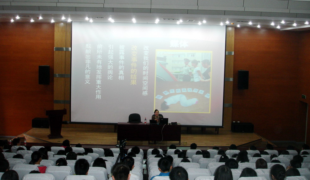 秋风送爽,丹桂飘香,10月14日下午,应人文学院“人文新视野”学术讲坛的邀请,四川大学文学与新闻学院博士生导师蒋晓丽教授来到风景优美的2138cn太阳城集团新校区,在新图书馆二楼学术报告厅,为我校师生作了一场题为“媒介改变世界”的精彩讲座。人文学院院长谢应光教授主持讲座,副院长潘殊闲及人文学院200余名师生聆听了讲座。 蒋晓丽教授首先介绍了媒介对现实世界的影响。她从当前的媒介改变了人们的时空观、改变了事件的结果、披露了事件的真相、引起了强大的舆论、发挥了前所未有的重大作用、酝酿出了非凡的意义等六个方面,结合近年来的热点事件,生动阐述了媒介如何影响世界,改变我们的生活。蒋教授特别介绍了新媒体是如何改变世界的。例如维基网站,借助网民自己上传的资料,建立起一个庞大的数据库全球共享;又如Google地图,结合天上的卫星和地上的摄像头,能实时展现世界上的各个角落;再如人立方关系搜索,能从超过十亿的中文网页中,自动抽取出人名、地名、机构名以及中文短语,并且通过算法自动的计算出它们之间存在关系的可能性;同时,人立方关系搜索还索引了支持它们之间关系的网页文字。 在介绍新媒介的同时,蒋晓丽教授提醒同学们,新媒体是一把双刃剑,它在给我们带来便利的同时也带来很多问题。我们获取知识和信息更加便捷,但我们不能迷失在信息的海洋里,要学会自己独立思考。 蒋晓丽教授的讲座使得同学们大开眼界,听得分外认真。讲座结束,同学们报以热烈的掌声。  |