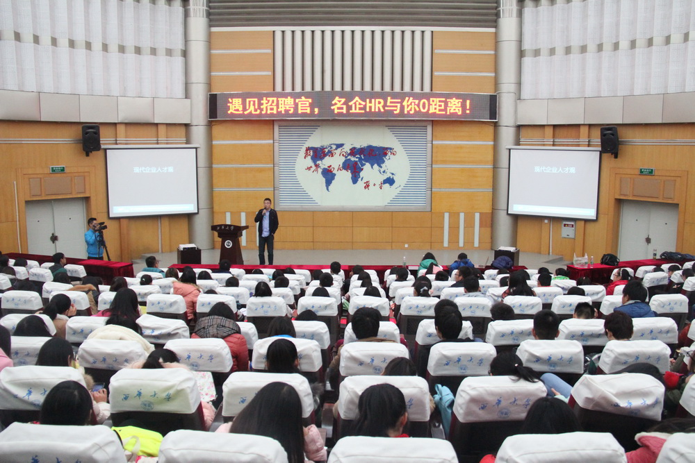 12月10日14:00,由浙江外服蓝拓人力联合招聘兄弟会主办,我校招生与就业处就业指导中心承办的2014大学生就业辅导公益讲座全国行西华专场“遇见招聘官 名企HR与你0距离”在四教报告厅开讲。各大名企招聘总监齐聚2138cn太阳城集团,以多年人力资源从业经验为同学们指点迷津,迅速提升职场的竞争力。 首先,北森川渝区总经理成沁瑾女士为大家讲解了简历与面试的经验技巧。成老师独具特色的讲授方式引起了同学们极高的兴趣。她将从企业HR手中成功获得职位的技巧概括为“一个中心,两个基本点,四项基本原则”,一个中心是指大家在四年的大学生活中一定要找准自己的方向,有简要的规划、目标,然后坚持不懈地为之努力。然后以“简历”、“面试”为两个基本点,自然大方,好好表现。此外还必须遵循“真实、具体、合理、自信”的四项原则,简历上的荣誉、经历要真实,实习经验要具体,用词用句合理,面试时要自信坦然。最后,成老师分享了求职八荣八耻“以工作经验为荣,以空学书本知识为耻。以工作技能为荣,以瞎考证书为耻……”让同学们莞尔一笑的同时也低头深思。 然后,浙江外服蓝拓人力副总经理罗晓峰先生分析了现代企业的人才观。“想去什么行业?想做什么职位?想进哪家企业?”罗老师一上台就抛出了问题,有的同学说想去宝洁公司,有的同学则沉默不语。罗老师指出同学们要有长远的目光,心中有目标企业,那就经常关注他们的招聘信息,从职位描述中获取信息,不断反省自身还缺乏哪方面的能力,有目的有计划地改进。罗老师认为企业需要的是“德才兼备,以德为先”的人才,“德”包括了正直诚信、勤奋务实、责任担当、坚持不懈;“才”包括了独立思考能力、创新能力、交流能力、深厚的专业能力等,而不同的岗位则侧重不同的能力。 成都天向互动科技有限公司人力资源高级经理江朋鲜先生则教大家如何避免求职误区。在千篇一律的简历中,招聘人员希望看到一份内容上有所创新的简历;求职中,不可对应聘企业一无所知,应提前了解企业信息;切忌带家属去面试,或认为个人能力强,而显得自负高傲。对于最尴尬的谈薪问题,江老师认为应首先了解职场行情,心中有底,以免漫天喊价。例如一般文员的薪资在3000元左右,同学们可根据自身的能力给出理想的薪资标准,要从容淡然,不要扭扭捏捏。 自由提问环节,同学们踊跃发言,“市场营销和审计专业哪个就业前景更好”、“如何胜任与专业不对口的工作”等等问题,三位主讲人都以切身体会或总结的经验耐心解答。三位老师都是招聘兄弟会的成员,招聘兄弟会是由一群目前活跃在中国人才招聘各领域的招聘专家志愿组成,成员所在企业涵盖了众多世界500强和国内优秀知名企业。招聘兄弟会以“大学生就业辅导”为公益项目为社会奉献价值。讲座结束后,不少同学表示此次讲座收获颇多,都争先加各位老师的微信号。