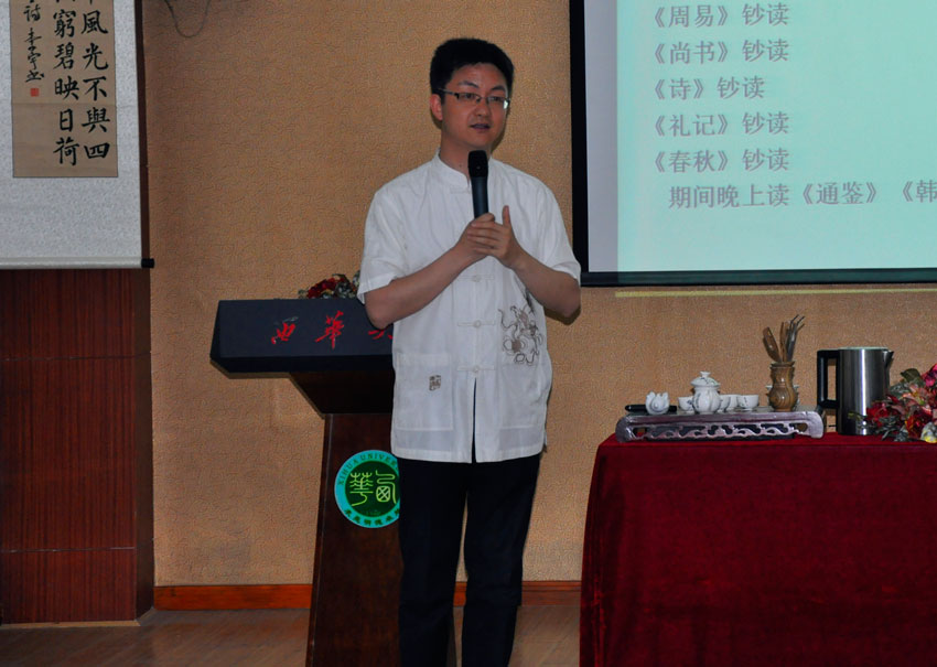 5月10晚,成都电视台少儿频道资深主持人兼节目总监陈岳先生应邀做客西华,在临江苑报告厅以《经典诵读与智慧人生》为主题给我校师生带来了一场精彩的讲座。 晚上7点10分,“这是我第二次来到西华,两年前我穿着我身上的这件衣服,今天我还是穿着它,只是它已经旧了。”陈岳先生指着自己的衣服开始了讲座,我们能感受到他身上散发的那份亲切。 接着,他以“为什么要学习传统文化”的问题和同学们进行交流,面对同学们的回答,他说:“你们的认识比有些中学的校长还要深刻。”后来他围绕着为什么要进行诵读,怎样去诵读,怎样教育孩子学传统文化等问题进行了精彩的讲解。他认为,之所以提倡诵读经典,是为在当今的实际生活中我们遇到了各种社会问题,而处理这些问题的方法,可以从我们古代的经典中去汲取智慧,这是经世致用。诵读,一定要选择“经典”,经典凝聚了数千年国人的经验与智慧。针对如何教育孩子学习传统文化,陈岳先生提倡“一定要从十三岁以前开始,让孩子们接触传统文化。” 在讲座中,他以平易的口吻、生动的事例让在场的师生感悟颇深,现场掌声不断。最后,在与现场同学们的交流中讲座划上圆满的句号。 链接:陈岳,成都电视台少儿频道资深主持人兼节目总监,著名国学启蒙教育者,中国电视艺术家协会会员。先后当选“四川省保护未成年人杰出公民”、“首届四川省中青年德艺双馨文艺工作者”、“四川省十佳电视文艺工作者”、“成都市十佳新闻工作者”、“成都市十佳杰出青年”,并于2008年12月获得中国播音主持最高奖“金话筒奖”。从2002年开始,就致力于国学启蒙教育和经典诵读辅导,为大学生、教职工、家长朋友和企业单位做国学公益讲座上百场。 成都电视台资深主持人兼栏目编导陈岳畅谈经典诵读 |