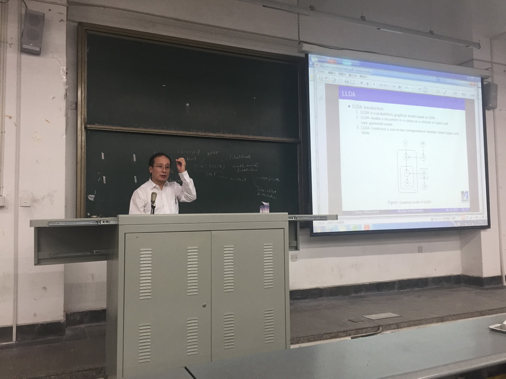 10月19日下午,来自麻州大学洛威尔校区计算机科学系的王杰教授在6B108为计算机与软件工程学院师生带来了一场关于“大数据文本自动化”的报告会。学院院长何明星,学工办主任刘凤丽,团委副书记李贵春以及计算机科学与技术、软件工程、物联网工程相关专业教师及学生参与此次报告会。 何明星代表学院欢迎王杰教授等一行人员,并向参会师生简单介绍了主讲人。王杰教授近年来的研究领域主要包括大数据建模及应用、文本自动化、算法和计算优化以及网络安全。迄今为止,王杰教授已获得过包括美国国家科学基金会、IBM、Intel、Google、Wantology等的资金支持。 王杰就目前研究项目“大数据文本自动化”作了讲述,对大数据文本自动化领域中多个问题进行研究并建立了一套能够进行快速阅读、快速抓取新闻和快速编辑文本的自动化系统。王教授就其中两项成果作了细致的描述。一项是qRead的新技术,这项技术可以将任何网页中的主要内容快速准确地抓取出来;另一项是利用Labeled Latent Direchlet Allocation (LLDA)对新闻进行快速准确分类的技术。整个报告过程中,王教授通过实例来帮助在场师生进行理解,同时他与大家讨论内容复杂性(Content Complexity)的概念对文章分类准确性的影响,并向大家展示研究所得到的实验结果。 此次报告会让大家再一次对大数据有了全新的认识,让师生从多角度去感受大数据的魅力,同时也增加了大家的知识储备。
