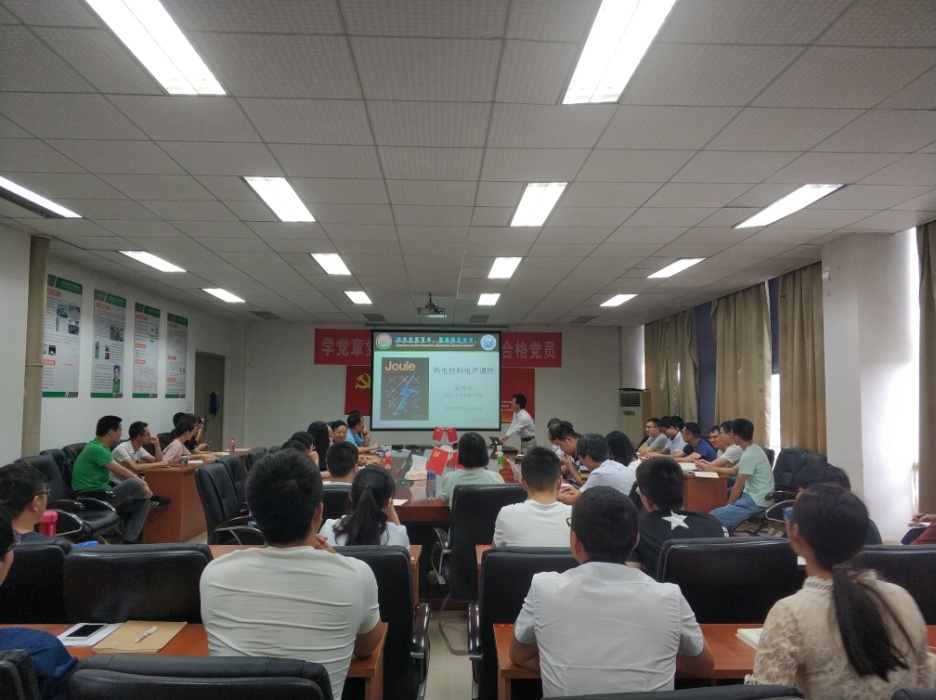 6月14日,应材料科学与工程学院的邀请,三名热电材料专家同济大学的裴艳中教授、浙江大学的朱铁军教授和河南大学的王渊旭教授分别在5A-427会议室作了三场精彩的学术报告。报告会由学院副院长金应荣教授主持,学院部分师生参加了报告会。
