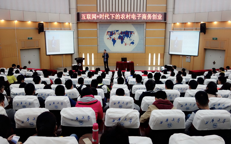 11月26日下午,四川归农农业科技有限公司总经理、西南财经大学客座教授罗大海应理学院邀请作客我校西华讲堂,在四教报告厅开展以“农村电子商务创业”为主题的讲座。理学院团委书记王筱莹、辅导员王婕携300余名同学参加了本次西华讲堂。 讲堂由陈永琦同学主持,他对到场嘉宾和同学表示热烈欢迎。随后,罗教授以“互联网+时代下的农村电子商务创业”为题展开讲解。他从互联网+、电子商务、农村电商创业以及接力家乡四个方面向在场同学们诠释主题,将科技与时代、农村的关系简洁化、明了化。他谈到,互联网的本质在于提升效率和降低成本,但同时也面临着提高生产力却又降低幸福感的挑战。对于同学们最感兴趣的部分——农村电商创业,罗教授讲述了其政策背景、政府支持和面临的三大瓶颈,农村电商创业最紧缺的还是专业人才,所以,有创业意愿的同学需要正确认识自己、选择合适项目,做到守正出奇、惠人达己。在互动环节中,同学们就自己关注的问题积极提问,无论是专业与就业、职业与事业还是个人与社会,均得到了罗教授幽默风趣的解答。 本次西华讲堂在一定程度上提升了同学们对“互联网+”内涵的认识,带动了同学们的创新创业精神,同时也为有创新、创业意愿的在校学生提供了交流平台,指明了方向。