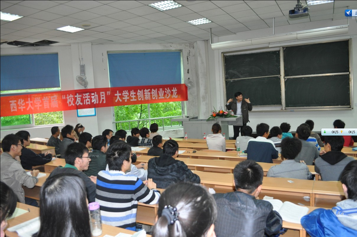 蒯一希校友在同学们热烈的掌声中走上讲台,他从自己的读书时代谈起,感叹现在各位学弟学妹的生活和学习条件比以前好多了,并表示非常愿意帮助学弟学妹们认识创新和创业。蒯一希校友结合自己的工作经历,着重谈到了创新和创业的关系。他提倡,我们应该首先以一种“集成创新”的思维去对待创新和创业,并且对创业要有一种专利保护意识,善于用法律的手段来捍卫自己的创新创业成果。