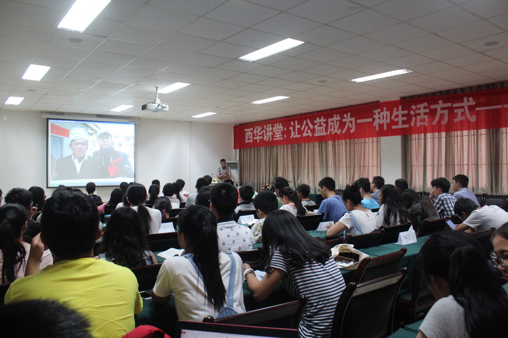 6月28日15:00,西华讲堂“让公益成为一种生活方式——微公益之我见”在体育馆北会议室顺利举行,本次讲堂邀请到理学院杨晓龙教授作为主讲人。杨教授在勤奋教学的同时,从事公益活动多年,他发起成立的“爱心背包”,曾获得中央电视台2013年“温暖中国身边好人”唯一一个团队奖。 讲座伊始,杨教授讲述了自己创立“爱心背包”公益团队并将其发展壮大的历程,“爱心背包”的团队成员已经由最初的13人发展到来自全国各地的756人。杨教授认为,公益无处不在,强调做公益不仅在于物质的援助,更重要的是心灵上的慰藉,“爱心背包”虽然能力不算强大,但聚少成多,做了很多实在事,这也体现了他所说的“微公益”。 杨教授还指出,公益不仅仅是物资的给予,更多的是情感的交流。“做义工时没有贵族和平民之分”,所有人在微公益上,都应该量力而行,做自己力所能及的事。他提出,如今的慈善不再是一个人付出很多,而是每一个人付出一点点。他认为慈善应当具有可持续性,应当是一种发自内心的需求。 讲座结束后,杨教授与在座同学亲切交流,即将赴2015年暑期”三下乡”的同学们纷纷表示,要向杨教授学习,以自己的行动去帮助那些需要帮助的人们。 主讲人简介: 杨晓龙,教授。历任理化学院院长、校工会副主席、基建规划处处长。2013年当选为由中央文明办主办、中国文明网承办的“中国好人榜”助人为乐好人。“爱心背包”获得中央电视台2013年“温暖中国身边好人”唯一一个团队奖。2014年获成都市第三届“道德模范”称号。