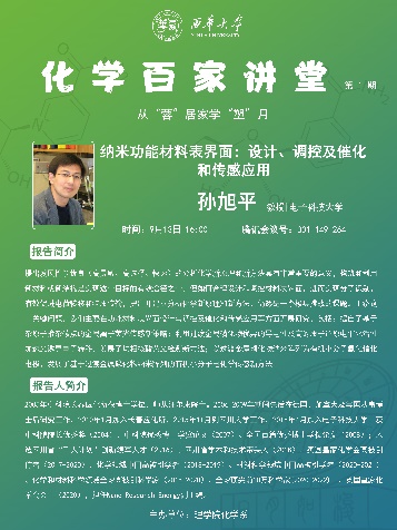 近期,理学院推出了化学百家讲堂,由化学系承办。围绕从“蓉”居家学“塑”九月主题,分别邀请电子科技大学孙旭平教授、吉林大学张越涛教授、北京化工大学许家喜教授、中南大学蓝敏焕教授、北京理工大学董宇平教授作有关纳米功能材料、受阻lewis酸碱实现精准合成、有机合成和立体化学、碳点设计和应用、聚集诱导发光等方面的学术报告,汤健钊顾问作线上Scifinder学术技能培训。