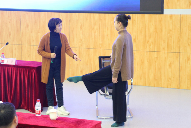 接着,袁禾教授以“舞蹈是什么”这一问题引入主题,与同学们讨论对舞蹈的理解,同时结合自身的理论知识和舞蹈功底对大家的回答进行了更深层次的补充。同时,她还通过对汉景帝之子刘发、三顾茅庐历史典故中的人物动作的讲解强调了舞蹈动作的重要性,生动地诠释了人体动作具有形象性、多义性、不确定性、涵盖性和指向性的特征,让在座的师生受益匪浅。