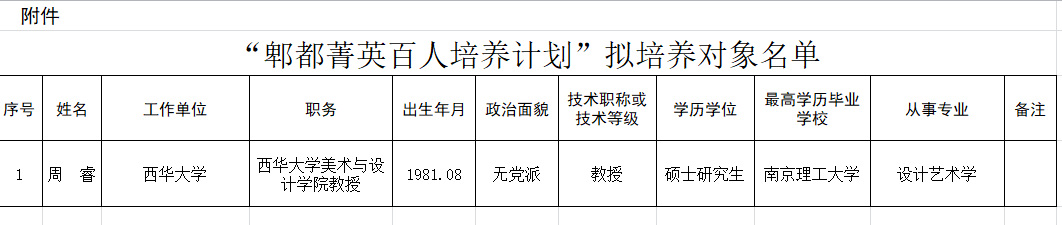 前期开展了“郫都菁英百人培养计划”评选工作,通过申报单位预审、牵头部门初审、专家评审、联合审定等环节,确定了47 人作为拟培养对象,并经区人才工作领导小组会议审议通过,现按程序对我校参选人员进行公示。
