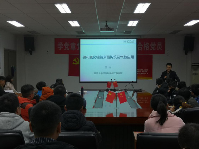 材料科学与工程学院12月613点5A427开展了主题为“镍和氧化镍纳米晶构筑及气敏应用”的报告会。学院党委副书记马洪波及全体研究生参加了此次报告会,王剑教授主讲。