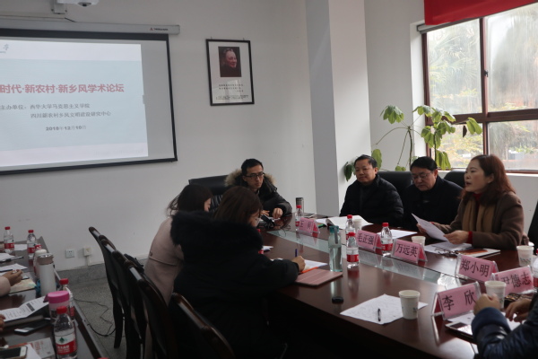 实施乡村振兴战略,是党的十九大作出的重大决策部署,是决胜全面建成小康社会,全面建设社会主义现代化国家的重大历史任务。实施乡村振兴必须按照“产业兴旺、生态宜居、乡风文明、生活富裕、治理有效”的基本要求推动乡村全面振兴。为活跃学术气氛,加强乡风文明建设研究,促进学科发展,作为马克思主义学院研究学术交流周系列互动内容,12月10日上午,四川新农村乡风文明建设研究中心和马克思主义学院联合举行了以“新时代·新农村·新乡风”为主题的乡风文明建设学术论坛。